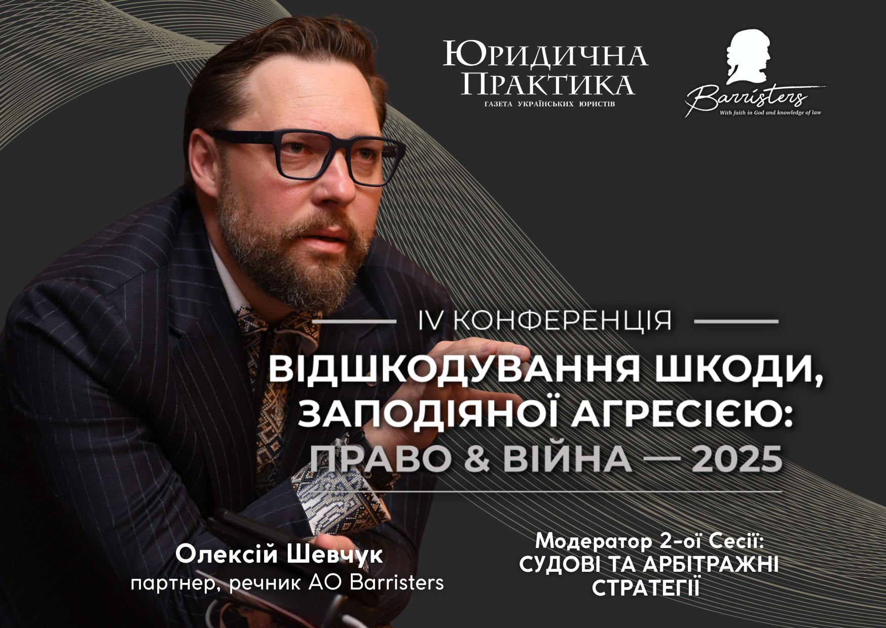 14 жовтня 2025 р. партнер та спікер АО Barristers Олексій Шевчук виступить модератором Сесії №2 «Судові та арбітражні стратегії» у межах IV Конференції «Відшкодування шкоди, заподіяної агресією: право & війна — 2025», організованої видавництвом Юридична практика.