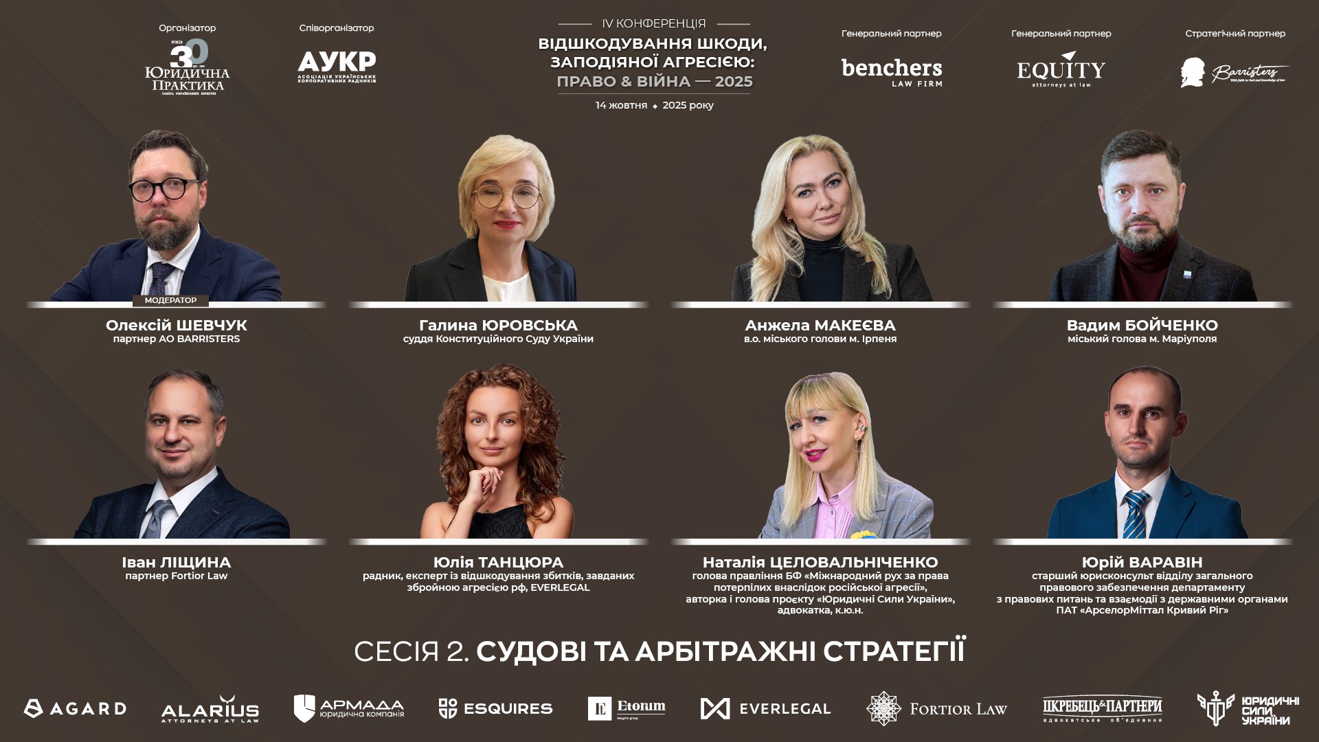 Олексій Шевчук, спікер НААУ та партнер АО Barristers, виступив модератором Сесії №2 «Судові та арбітражні стратегії» у межах IV Конференції «Відшкодування шкоди, заподіяної агресією: право & війна — 2025»